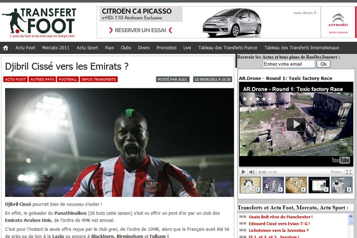 Συγκεκριμένα, η γαλλική ιστοσελίδα “transfert-foot.net”, σε άρθρο της κάνει λόγο για πρόταση που έχει δεχθεί η ΠΑΕ Παναθηναϊκός ύψους 10.000.000 ευρώ από τα Ηνωμένα Αραβικά Εμιράτα για τη μεταγραφή του Τζιμπρίλ Σισέ.