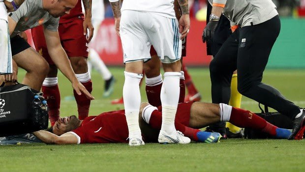 Στο 25ο λεπτό σημειώθηκε η πιο κρίσιμη φάση του ημιχρόνου. Ο Ράμος μπήκε δυνατά σε μία μονομαχία με τον Σαλάχ, κέρδισε την μπάλα, αλλά έπεσε πάνω του, με συνέπεια το χέρι του Αιγύπτιου να “κλειδώσει” στραβά μεταξύ του χορταριού και του σώματός του. Ο ηγέτης των Άγγλων δέχθηκε πρώτες βοήθειες αλλά δεν κατάφερε να συνεχίσει και αποχώρησε με δάκρυα στα μάτια.