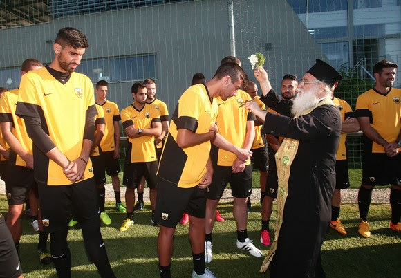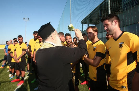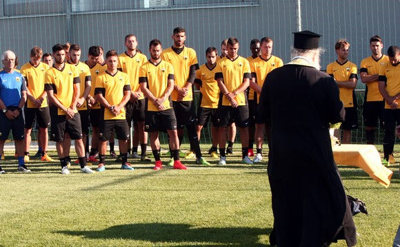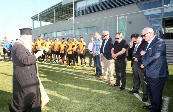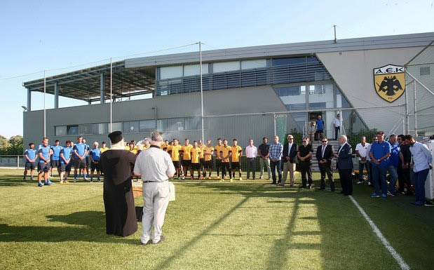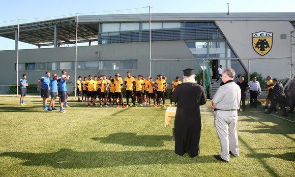 Πραγματοποιήθηκε την Δευτέρα (6/7) το απόγευμα ο αγιασμός και η πρώτη προπόνηση της ΑΕΚ ενόψει της νέας χρονιάς που βρίσκει την “ένωση” και πάλι στην Super League. Η πρώτη έγινε στο αθλητικό κέντρο της ομάδας στα Σπάτα με τον Δημήτρη Μελισσανίδη να βρίσκεται δίπλα στους παίκτες των κίτρινων ενώ εκεί ήταν και τα περισσότερα μεταγραφικά αποκτήματα της ομάδας.