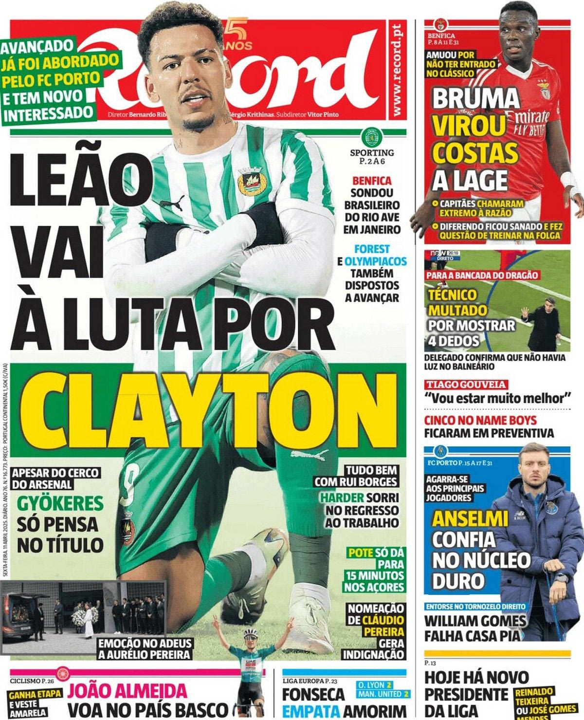 Πρωτοσέλιδο Record: “Ολυμπιακός, Πόρτο, Μπενφίκα και Νότιγχαμ στο κυνήγι του Κλέιτον”