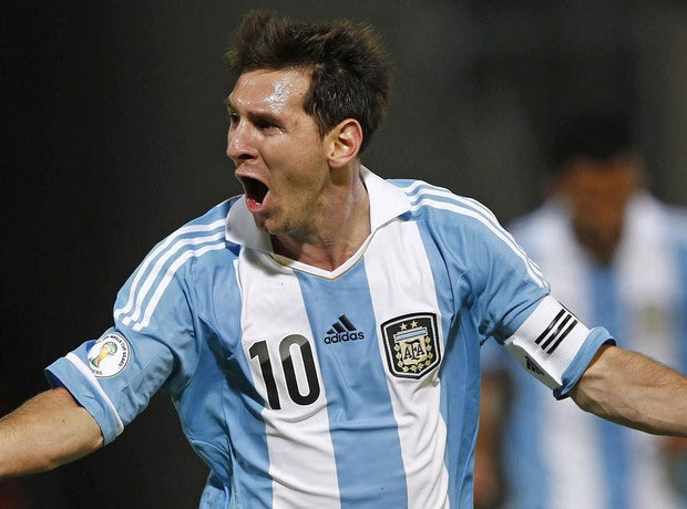 Argentina's Lionel Messi celebrates after scoring their third goal against Paraguay in a 2014 World Cup qualifying soccer match in Cordoba September 7, 2012. REUTERS/Marcos Brindicci (ARGENTINA - Tags: SPORT SOCCER)