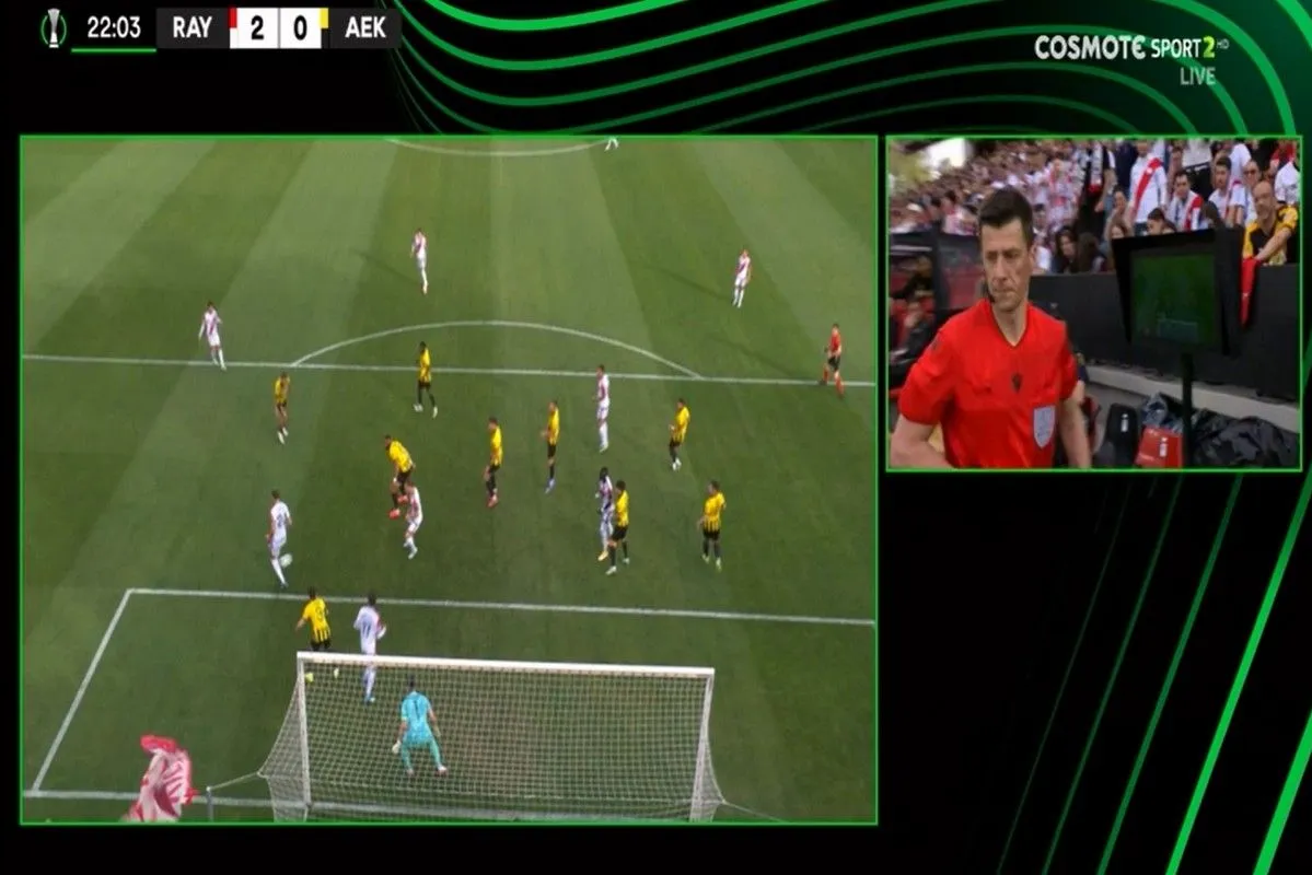 Η Ράγιο Βαγιεκάνο άνοιξε το σκορ μόλις στο 2ο λεπτό με τον Ακχομάχ και λίγο πριν από τη συμπλήρωση του 20λεπτου βρήκε και δεύτερο γκολ απέναντι στην ΑΕΚ, στο πλαίσιο της πρώτης μονομαχίας των δύο ομάδων για τους 8 του Conference League, ωστόσο αυτή τη φορά η μπάλα δεν στήθηκε στη σέντρα.