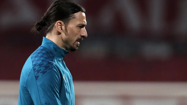 Ο Ζλάταν Ιμπραχίμοβιτς κατά τη διάρκεια του αγώνα της Μίλαν με τον Ερυθρό Αστέρα για το Europa League @ 2021 Darko Vojinovi/Associated Press