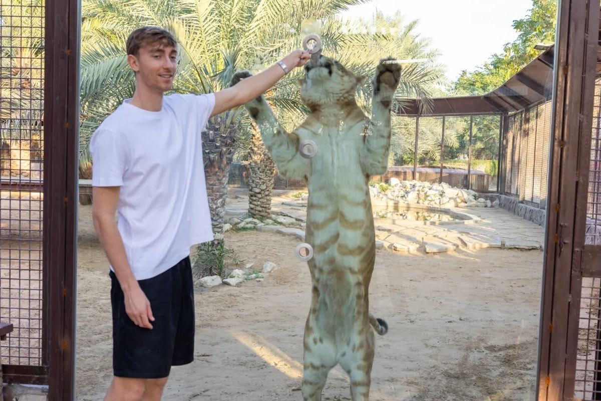Κατά τη διάρκεια της παραμονής του εκεί, ο Χούισεν επισκέφθηκε το Fame Park και δέχθηκε μια ιδιαίτερη πρόκληση… να δοκιμάσει τη δύναμή του σε αγώνα διελκυστίνδας απέναντι σε λιοντάρι. Μια σκηνή που περισσότερο θύμιζε θέαμα παρά πραγματική αναμέτρηση, αλλά σίγουρα δεν πέρασε απαρατήρητη.