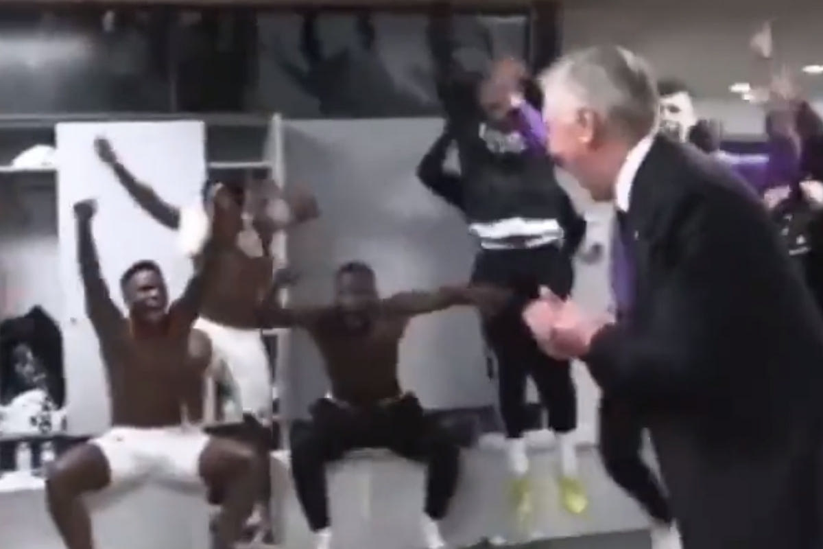 Χαμός επικράτησε στα αποδυτήρια της Ρεάλ μετά την πρόκριση στον τελικό του Copa del Rey, με τον Κάρλο Αντσελότι να κάνει "δώρο" στους παίκτες του ρεπό κι εκείνοι να πανηγυρίζουν έξαλλα.