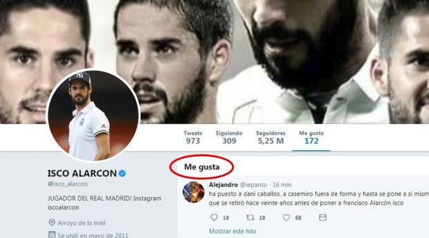 “Έβαλε τον Θεμπάγιος και προτίμησε τον Καζεμίρο που είναι εκτός φόρμας παρά τον Ίσκο”, έγραψε ένας οπαδός που θέλησε να κριτικάρει τον Σολάρι, με τον Ίσκο να επιδοκιμάζει την άποψη αυτή κάνοντας “like” στο παραπάνω σχόλιο.