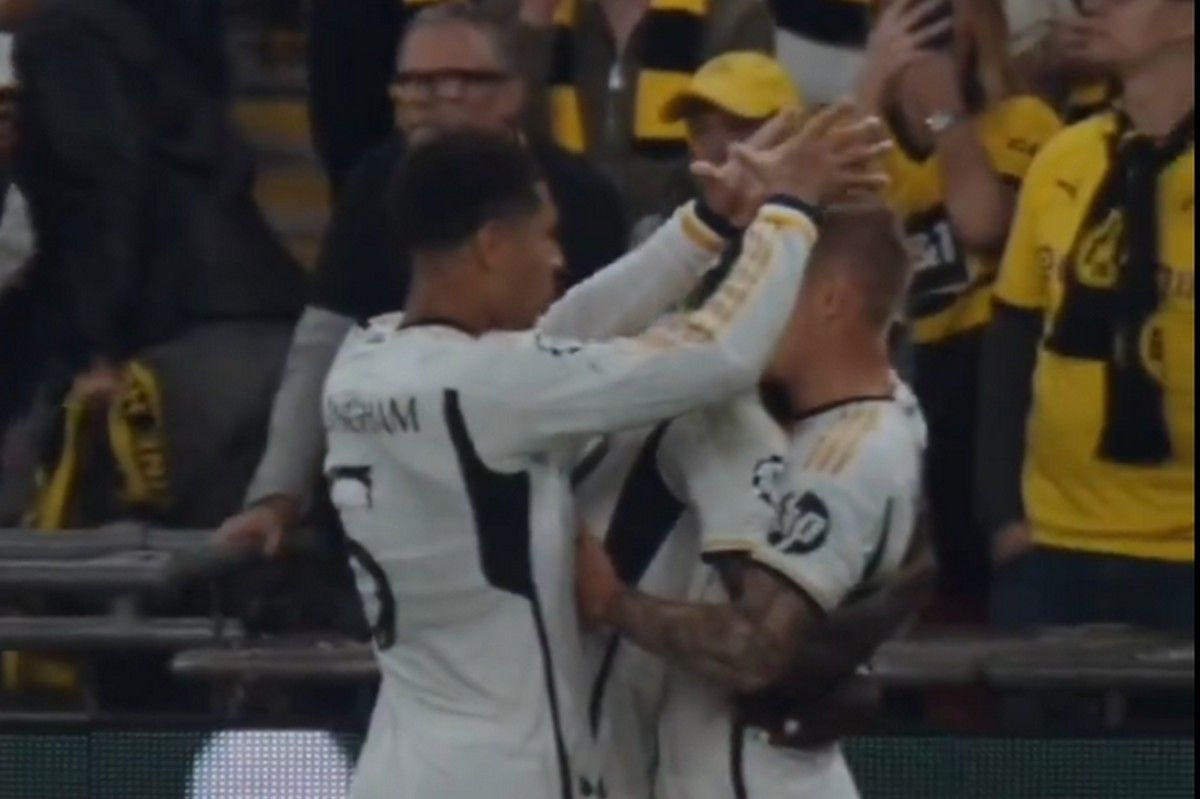 Ο Τζουντ Μπέλιγχαμ έτρεξε κατευθείαν στον Τόνι Κρόος και σχημάτισε με τα χέρια του ένα στέμμα πάνω από το κεφάλι του Γερμανού μέσου, μετά το 1-0 της Ρεάλ επί της Ντόρτμουντ.