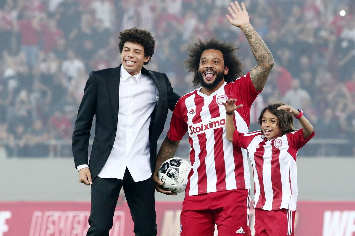 Ο Μαρσέλο με τους γιους του στην παρουσίασή του από τον Ολυμπιακό