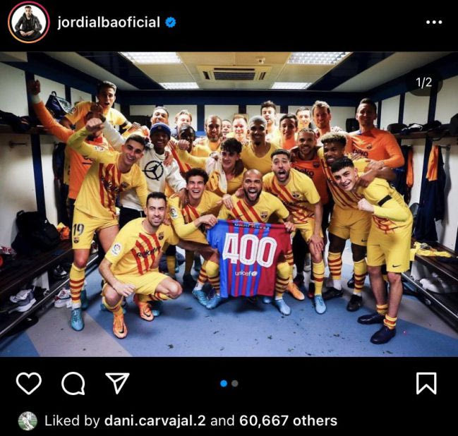 Λίγα λεπτά έπειτα από το θριαμβευτικό 4-0 της Μπαρτσελόνα επί της Ρεάλ, ο Τζόρντι Άλμπα ανέβασε στο Instagram μια πανηγυρική φωτογραφία. Ένα από τα χιλιάδες like που πήρε ήταν του... Ντάνι Καρβαχάλ.