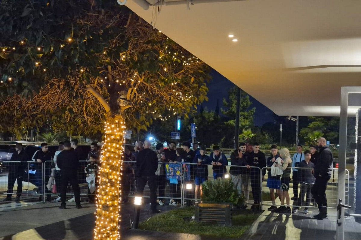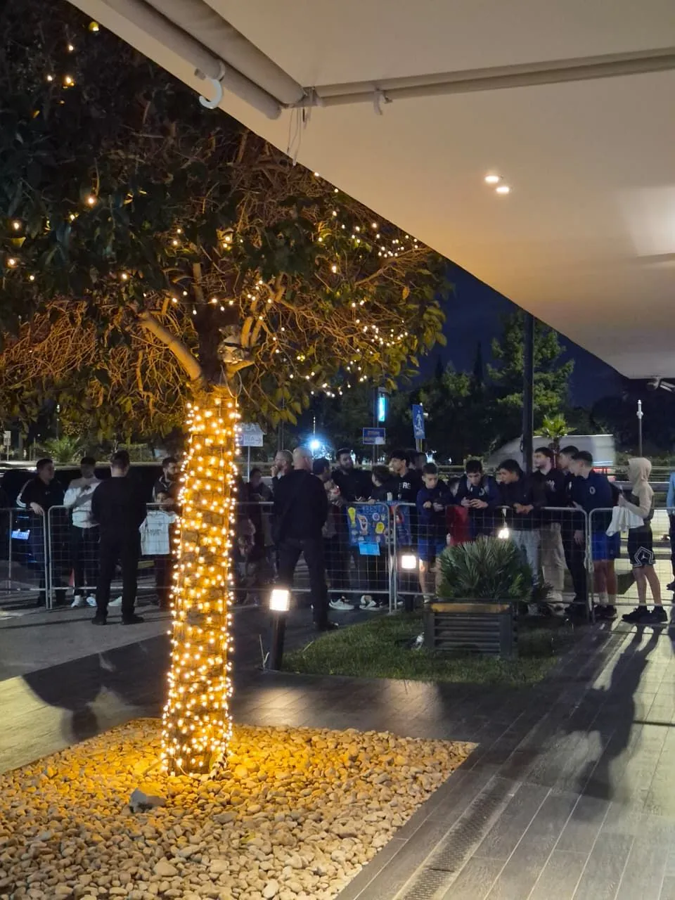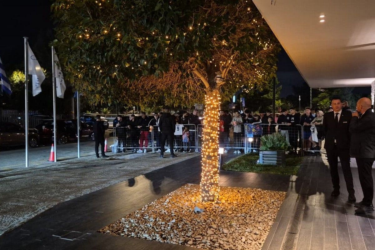 Δεκάδες φίλοι της Ρεάλ μαζεύτηκαν έξω από το κεντρικό ξενοδοχείο της Αθήνας, στο οποίο θα διαμείνει η μαδριλένικη ομάδα εν όψει της αναμέτρησης με τον Ολυμπιακό. Δείτε τη φωτογραφία του SPORT24.
