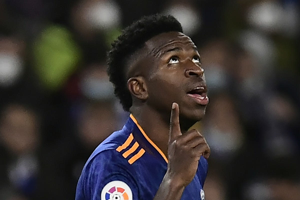 Ο Βινίσιους της Ρεάλ πανηγυρίζει γκολ που σημείωσε κόντρα στη Ρεάλ Σοσιεδάδ για τη La Liga 2021-2022 στο "Ανοέτα", Σαν Σεμπαστιάν | Σάββατο 4 Δεκεμβρίου 2021