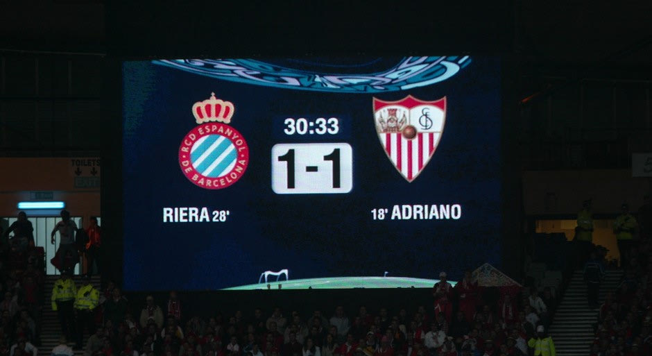 Ο φωτεινός πίνακας του “Hampden Park” με το όνομα του Άλμπερτ Ριέρα (τελικός ΟΥΕΦΑ, 16-5-2007)