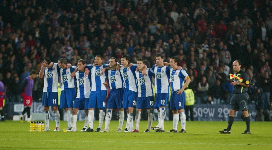 Η διαδικασία των πέναλτι στον τελικό του ΟΥΕΦΑ βρίσκεται σε εξέλιξη και ο Άλμπερτ Ριέρα (αριστερά) είναι ο μόνος που δεν αντέχει να κοιτάξει (16-5-2007)