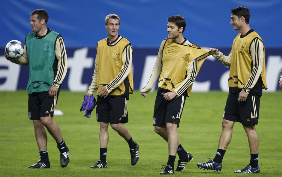 Ο Άλμπερτ Ριέρα αστειεύεται με τον Τσάμπι Αλόνσο σε προπόνηση της Λίβερπουλ (2008)