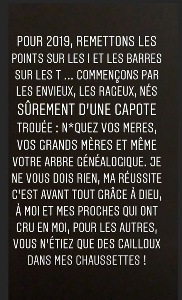 Η συγκεκριμένη ανάρτηση έφερε και την αντίδραση πολλών δημοσιογράφων καθώς και τα σχόλια πολλών χρηστών των μέσων κοινωνικής δικτύωσης. Ο Ριμπερί πέρασε στην αντεπίθεση χρησιμοποιώντας υβριστικούς χαρακτηρισμούς. Το πρώτο εκ των δύο αναρτήσεων έγραφε: “Για το 2019 ας ξεκινήσουμε με τους ζηλιάρηδες, τους “haters” κι εκείνους που γεννήθηκαν εξαιτίας ενός σπασμένου προφυλακτικού: Γ…..νται οι μάνες σας, οι γιαγιάδες και το γενεαλογικό σας δένδρο! Δεν σας χρωστάω τίποτα. Την επιτυχία μου τη χρωστάω στο Θεό, την οικογένεια και τους φίλους μου, που με πιστεύουν”
