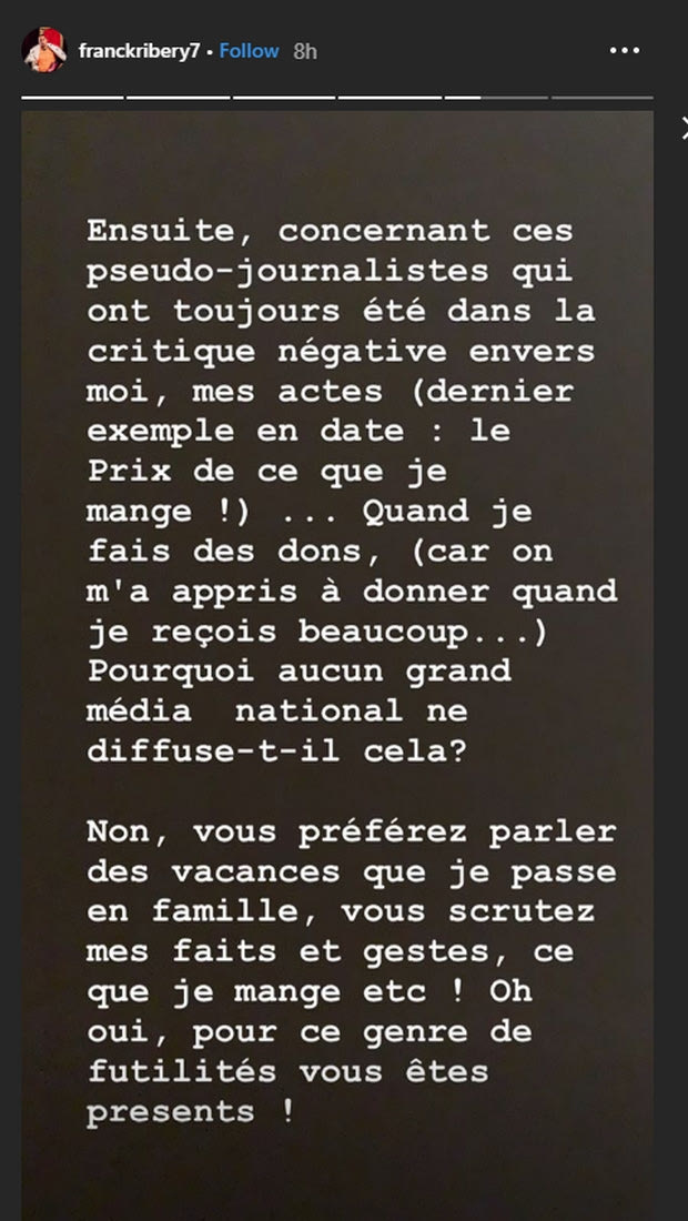 Ο Φράνκ Ριμπερί μέσα από τον λογαριασμό του στο instagram επιτέθηκε με απαράδεκτες εκφράσεις σε όσους κριτικάρουν τον τρόπο ζωής του, αλλά και κατά των δημοσιογράφων.