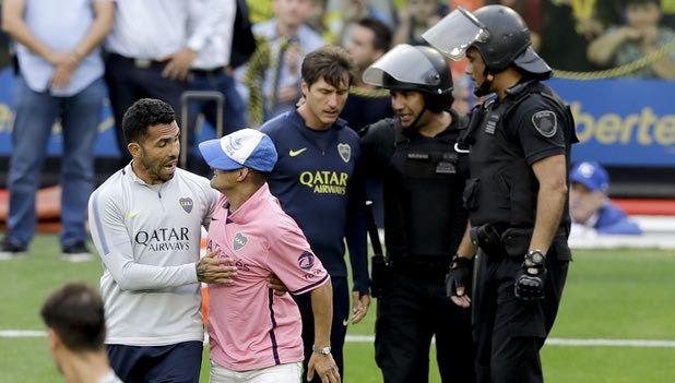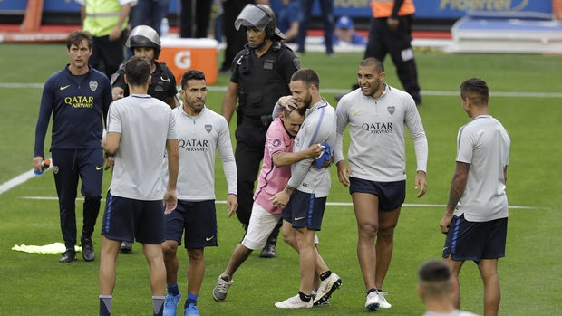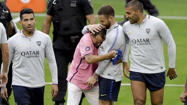 Ένας από τους χιλιάδες παθιασμένους φίλους της Μπόκα δεν άντεξε και εισέβαλε στον αγωνιστικό χώρο, την ώρα που διεξαγόταν η προπόνηση. Οι άνδρες της ασφάλειας, ωστόσο, τον έριξαν στο έδαφος και ακολούθως τον περιέλαβαν οι αστυνομικοί.