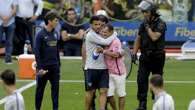 Ο Κάρλος Τέβες, όμως, που παρακολούθησε τι είχε συμβεί, έσπευσε κοντά τους, ζήτησε από τις Αρχές να ηρεμήσουν και πήρε αγκαλιά τον οπαδό της Μπόκα, ο οποίος στη συνέχεια πήρε αγκαλιά και άλλους ποδοσφαιριστές της αγαπημένης του ομάδας, ξεσπώντας σε κλάματα.