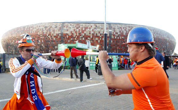 Ολλανδοί φίλαθλοι έξω από το “Soccer City” του Γιοχάνεσμπουργκ, πριν τον τελικό του Μουντιάλ (11/7/2010)