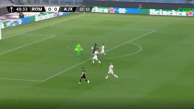 Ο Άγιαξ απέκτησε το προβάδισμα στο 49ο λεπτό της αναμέτρησης κόντρα στη Ρόμα. Ο Σουρς έβγαλε μία βαθιά μπαλιά, ο Μπράιαν Μπρόμπι εκμεταλλεύτηκε την έξοδο του Λόπες και με ένα άγγιγμα έστειλε την μπάλα στα δίχτυα για το 0-1.