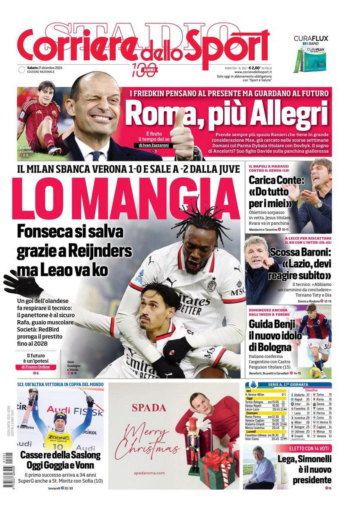 Το πρωτοσέλιδο της Corriere dello Sport (21/12/2024)
