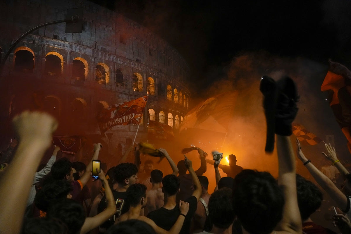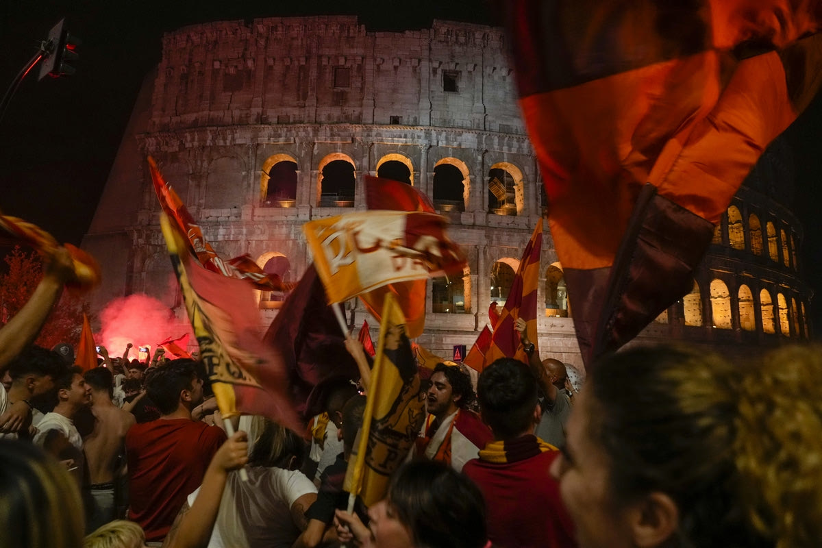 Χιλιάδες φίλοι της Ρόμα συγκεντρώθηκαν μετά την κατάκτηση του Conference League έξω από το Κολοσσαίο για να πανηγυρίσουν τον θρίαμβο της ομάδας του Ζοζέ Μουρίνιο.