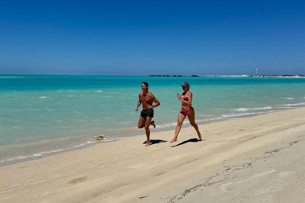 Το ζευγάρι δεν γίνεται όμως να παραλείψει την καθημερινή του γυμναστική και για αυτό γυμνάζεται ακόμα και στην παραλία, απαθανατίζοντας την στιγμή.