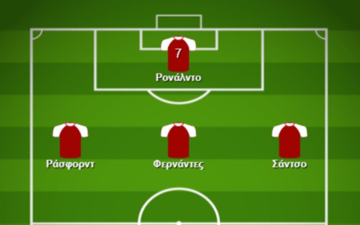 Φυσικά η πρώτη έχει τον Κριστιάνο Ρονάλντο σε ρόλο κεντρικού φορ, με τους Μάρκους Ράσφορντ, Μπρούνο Φερνάντες και Τζέιντον Σάντσο να τοποθετούνται στην τριάδα που θα κινείται ακριβώς πίσω του. Ο νεαρός Άγγλος που αποκτήθηκε από την Ντόρτμουντ, προορίζεται για βασικός, παρόλο που στις πρώτες δύο αναμετρήσεις με Λιντς και Σαουθάμπτον ο προπονητής των Red Devils χρησιμοποίησε στο δεξί άκρο τους Ντάνιελ Τζέιμς και Μέισον Γκρίνγουντ αντίστοιχα.