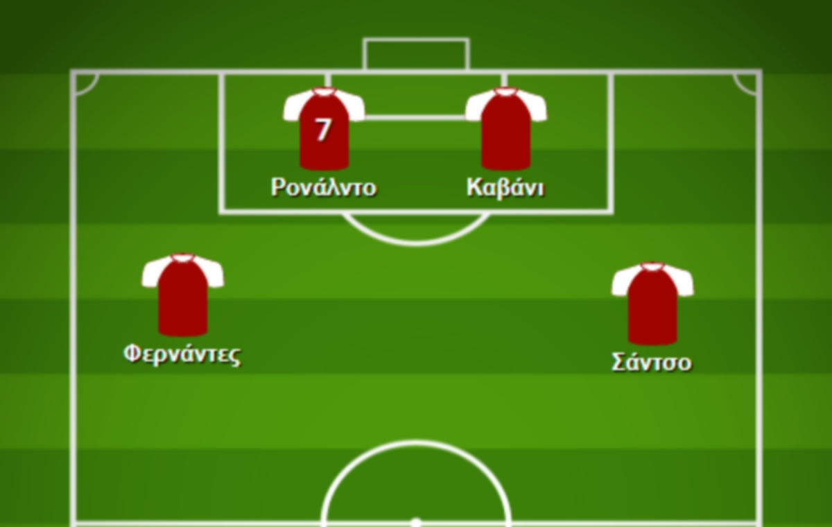 Η δεύτερη φέρνει τον Ρονάλντο στο αριστερό άκρο της επίθεσης, εκεί που κατά βάση αγωνιζόταν κατά την πρώτη θητεία του στο Ολντ Τράφορντ. Φυσικά ο Μπρούνο Φερνάντες παραμένει ως παίκτης στο “10”, όπως και ο Σάντσο στη δεξιά πλευρά, ενώ η διαφοροποίηση έχει να κάνει με τον Έντιστον Καβάνι, ο οποίος παίρνει αυτομάτως τη θέση στην κορυφή της επίθεσης.
