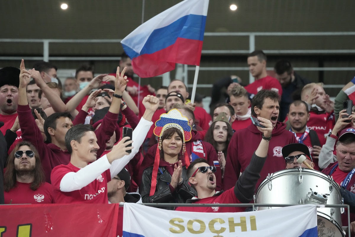 Οπαδοί της Ρωσία στις εξέδρες του "Λουζνίκι" σε ματς με την Κροατία γι ατα προκριματικά του Παγκοσμίου Κυπέλλου 2022