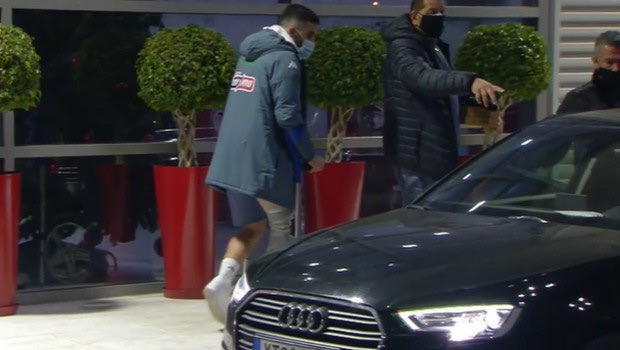 Η στιγμή που ο Σαβιέρ αποχωρεί με πατερίτσες από το "Γ. Καραϊσκάκης"