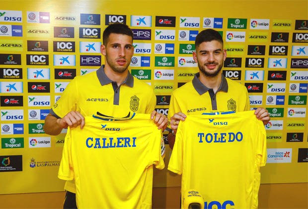 Καλέρι και Τολέδο στην επίσημη παρουσίασή τους από την Λας Πάλμας. Οι δυο Αργεντίνοι αποκτήθηκαν για να ενισχύσουν το κέντρο και την επίθεση της Unión Deportiva.