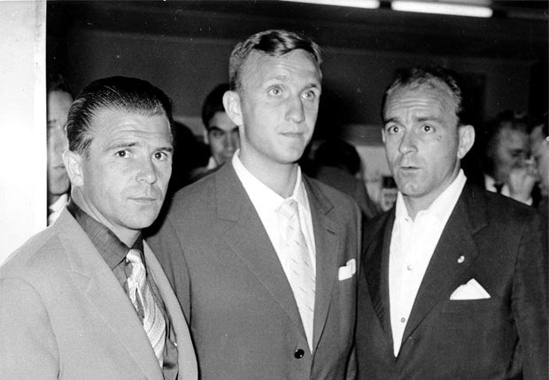 Η Ρεάλ Μαδρίτης είναι η ομάδα με τα περισσότερα πρωταθλήματα (33) στην ιστορία της Primera División. Εδώ τρεις μεγάλες δόξες των “μερένγκες” το 1960. Από αριστερά, Φέρεντς Πούσκας, Χοσέ Σανταμαρία και Αλφρέδο Ντι Στέφανο (AP Photo/File)