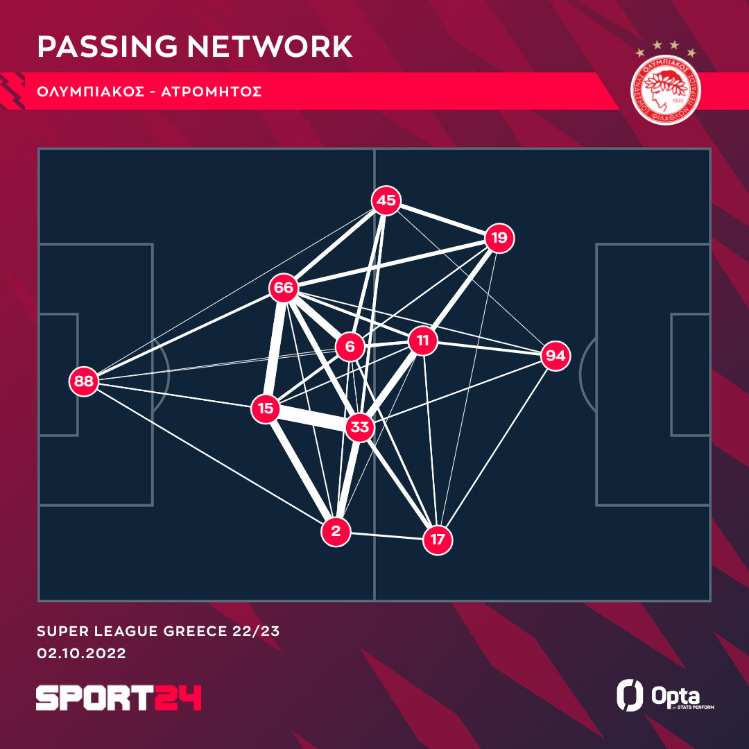 Ο Ολυμπιακός κόντρα στον Ατρόμητο έκανε μία από τις πιο μεστές του εμφανίσεις. Επικράτησε 2-0 των Περιστεριωτών δίκαια και είχε την υπεροχή επιθετικά, αλλά και αμυντικά.