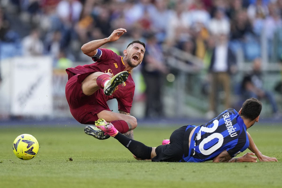 Ο Χακάν Τσαλχάνογλου της Ίντερ μονομαχεί με τον Λορέντζο Πελεγκρίνι της Ρόμα για τη Serie A 2022-2023 στο "Ολίμπικο", Ρώμη | Σάββατο 6 Μαΐου 2023