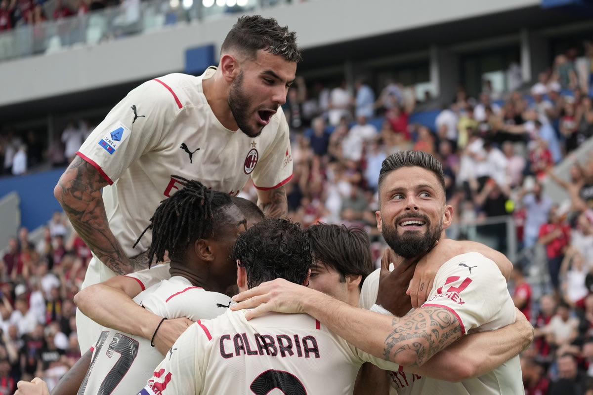 Οι παίκτες της Μίλαν πανηγυρίζουν γκολ που σημείωσαν κόντρα στη Σασουόλο για τη Serie A 2021-2022 στο "Μαπέι", Ρέτζιο Εμίλια | Κυριακή 22 Μαΐου 2022