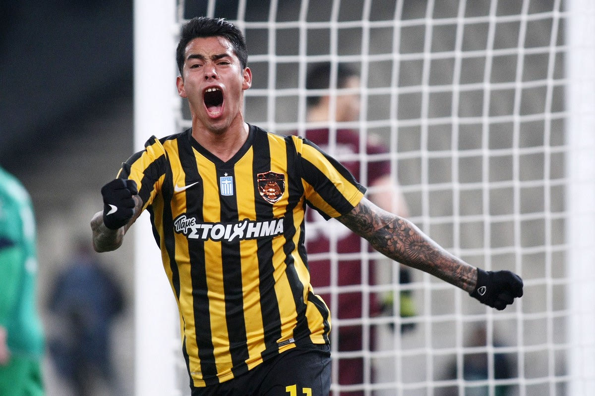 Ο Σέρχιο Αραούχο πανηγυρίζει γκολ του στο ντέρμπι με τον Ολυμπιακό Eurokinissi Sports
