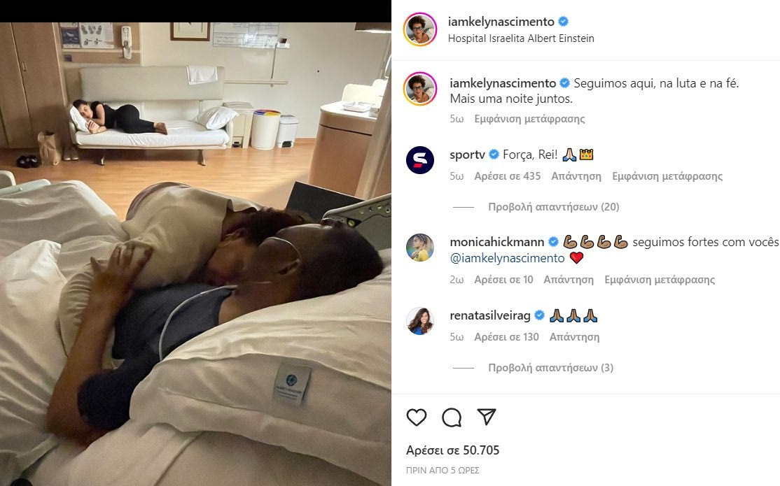 Η κόρη του Πελέ, Κέλι Νασιμέντο, ανέβασε στο Instagram μια συγκινητική φωτογραφία στην οποία κοιμάται αγκαλιά με τον πατέρα της στο νοσοκομείο.