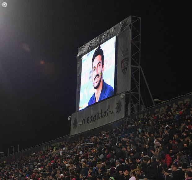 Με το που έφτασε το ματς στο 13ο λεπτό, προβλήθηκε στα μάτριξ της “Sardegna Arena” φωτογραφία του Νταβίντε Αστόρι, για να ακολουθήσει ένα παρατεταμένο χειροκρότημα των θεατών στη μνήμη του Ιταλού διεθνούς αμυντικού που φορούσε τη φανέλα με το Νο 13 στην πλάτη.