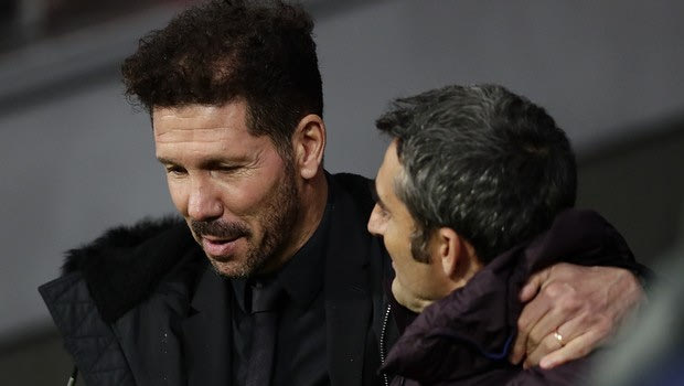 Ο Ντιέγκο Σιμεόνε με τον Ερνέστο Βαλβέρδε κατά τη διάρκεια ντέρμπι της Ατλέτικο Μαδρίτης με την Μπαρτσελόνα το 2019 ⓒ 2019 Φωτογράφος/Associated Press