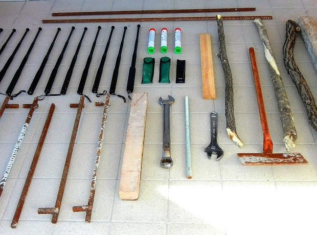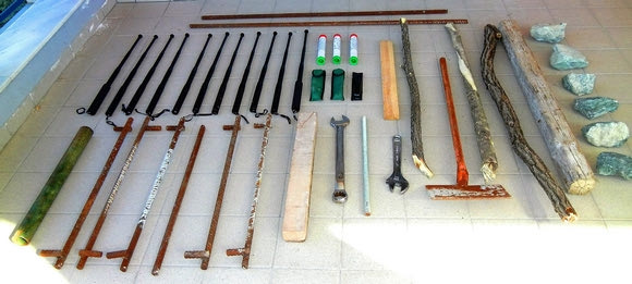 * Αυτά ήταν τα φονικά σύνεργα που είχαν μαζί τους οι χούλιγκαν που συνελήφθησαν.