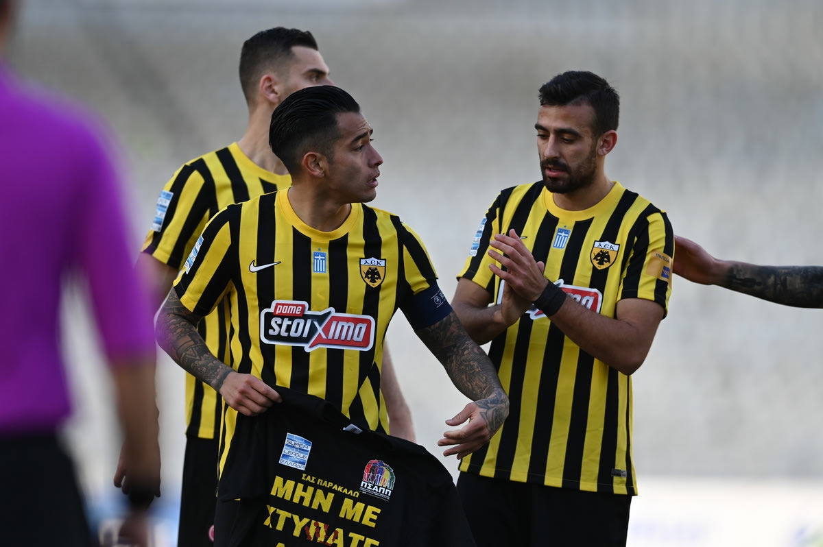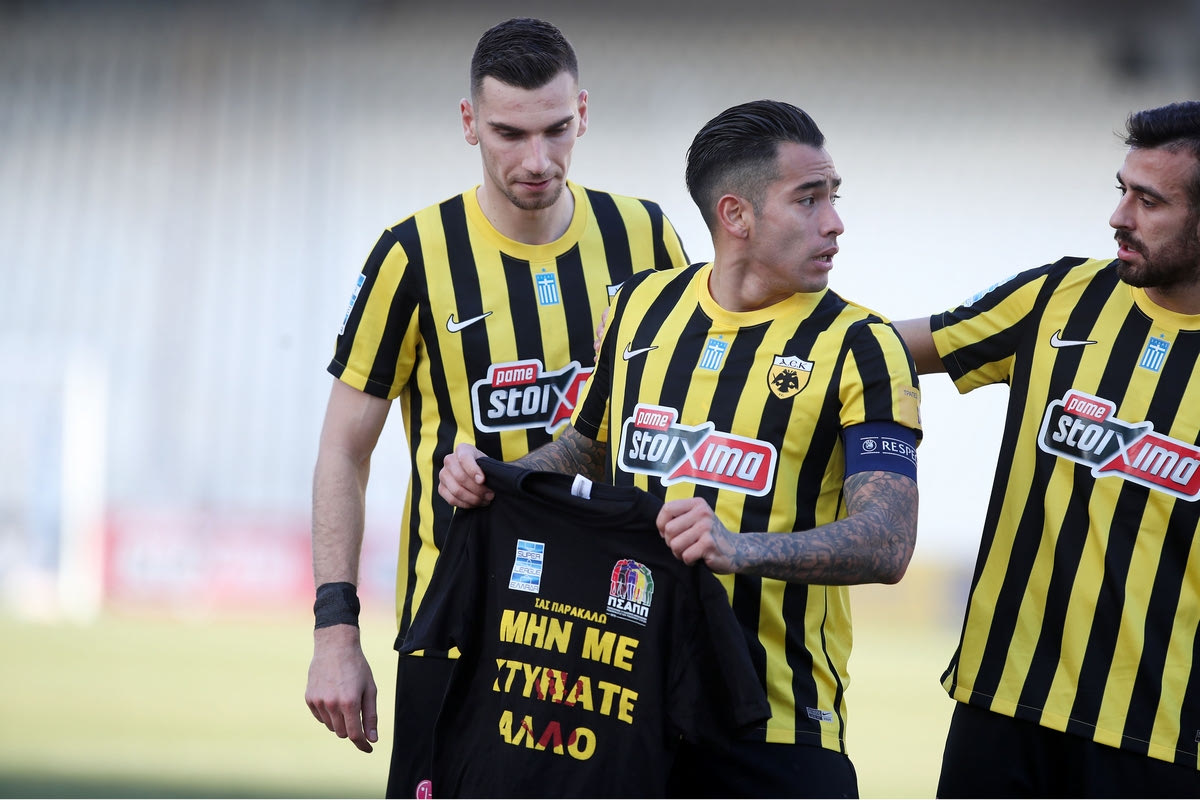 Η ΑΕΚ άνοιξε το σκορ κόντρα στον Απόλλωνα με υπέροχο γκολ του Σέρχιο Αραούχο. Ωστόσο, ο Αργεντινός επιθετικός δεν το πανηγύρισε, καθώς πήγε απευθείας στον πάγκο, πήρε τη φανέλα με το μήνυμα “Σας παρακαλώ, μην με χτυπάτε άλλο” και αφιέρωσε γι’ άλλη μία φορά το γκολ στον αδικοχαμένο Άλκη.