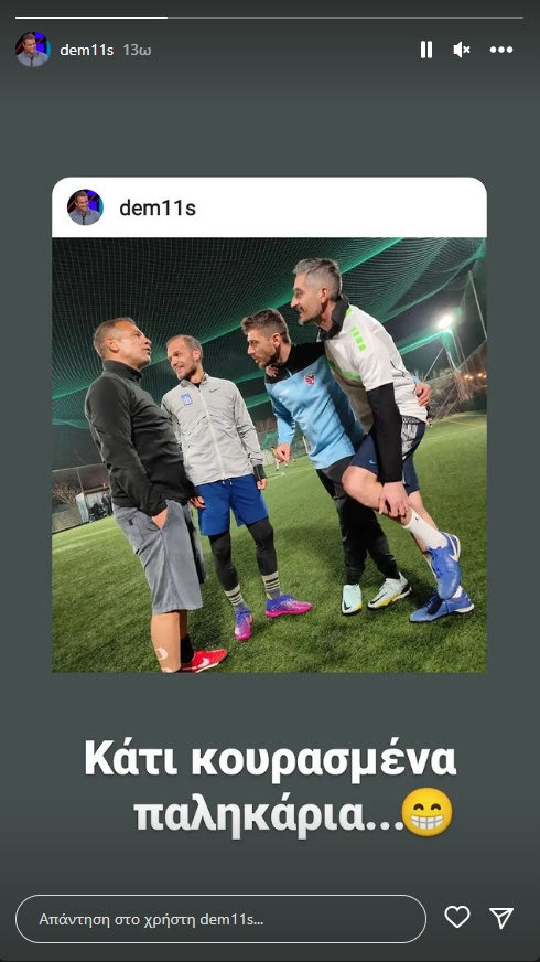 Ο Ντέμης Νικολαΐδης ανέβασε στον λογαριασμό του στο Instagram μια φωτογραφία με τους τέσσερίς τους, ενώ σε ένα story θέλησε να κάνει χιούμορ, γράφοντας: “Κάτι κουρασμένα παλικάρια“.