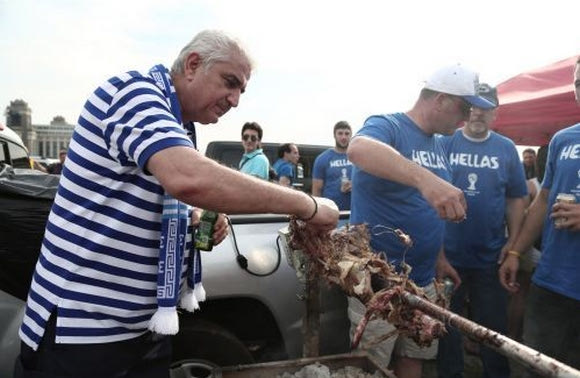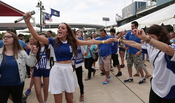 Η Καλοιμοίρα, λοιπόν, βρέθηκε πριν τον αγώνα έξω από το “PPL Stadium” στη Φιλαδέλφεια που είχε στηθεί μια γιορτή από τους Έλληνες της χώρας. Αρνιά, κλαρίνα και παραδοσιακοί χοροί, με την ίδια να τραγουδάει και να σέρνει τον χορό για τα καλά!