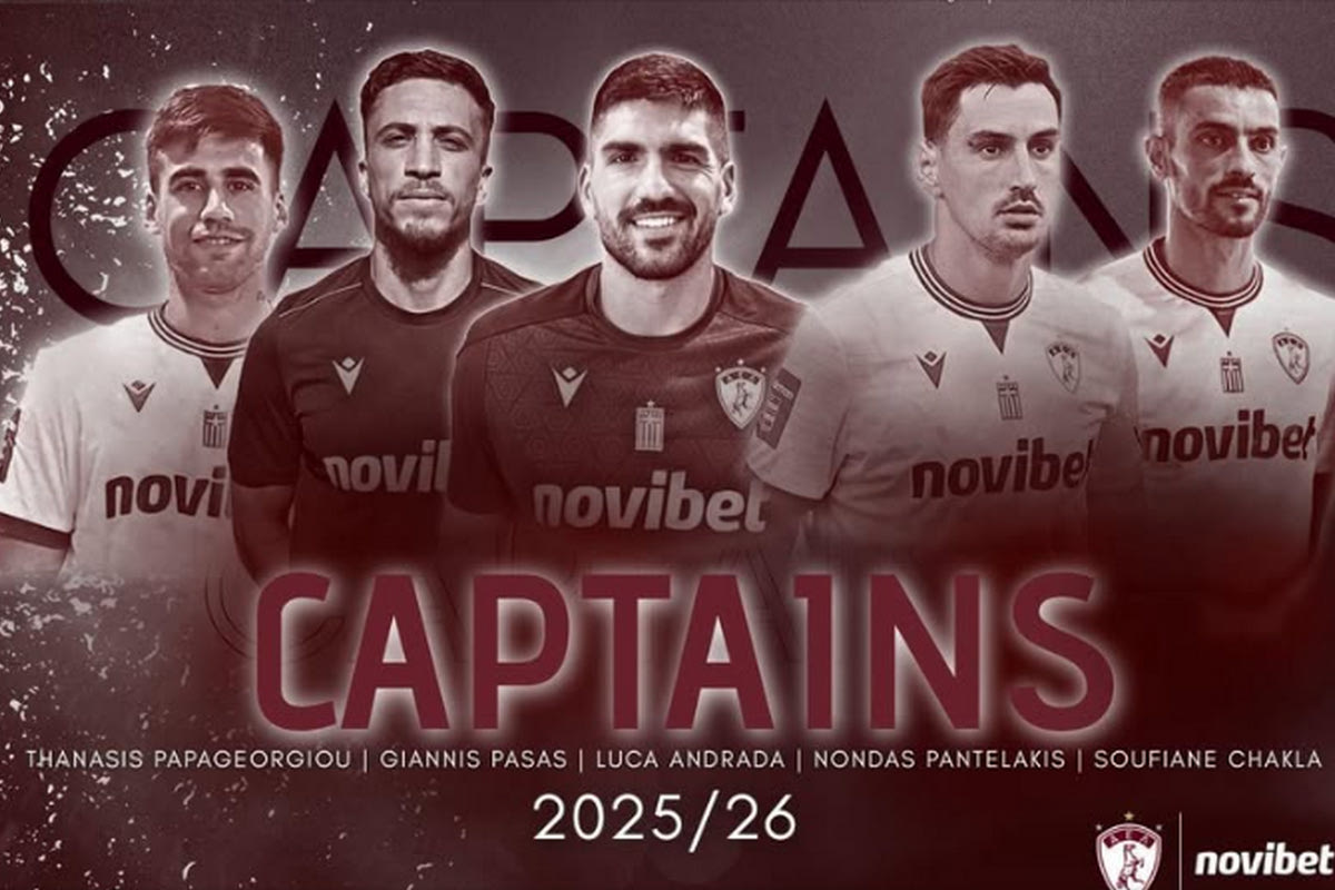 Εκ μέρους του ποδοσφαιρικού τμήματος οι Αρχηγοί, Θανάσης Παπαγεωργίου – Γιάννης Πασάς – Λούκα Αντράντα – Νώντας Παντελάκης – Σοφιάν Τσάκλα”.