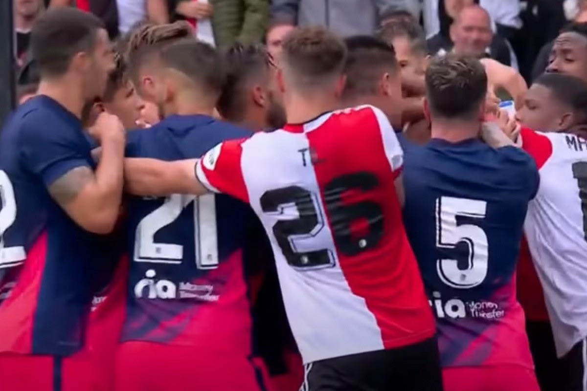 Μόνο φιλική δεν ήταν η αναμέτρηση που έδωσε η Φέγενορντ με την Ατλέτικο το απόγευμα της Κυριακής στην Ολλανδία καθώς στο 40′ του αγώνα υπήρξε σύρραξη ανάμεσα στους παίκτες των δύο ομάδων, αψιμαχίες, αίμματα και κόκκινη.