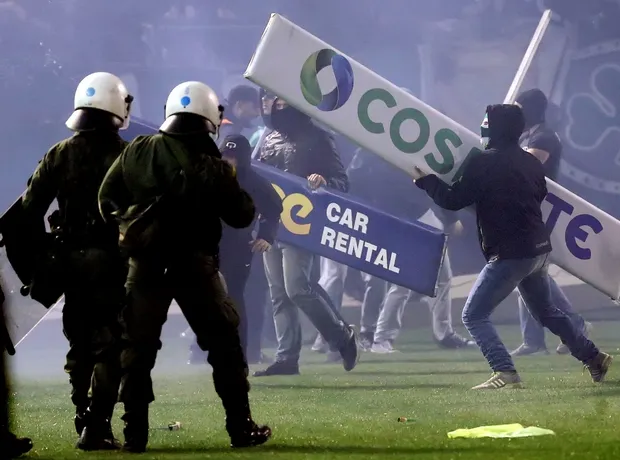 Με αυτή την απόφασή, όπως υποστηρίζουν στον Ολυμπιακό, “εξαφανίζει” τα εκτεταμένα επεισόδια εντός αγωνιστικού χώρου και με τις κλήσεις του αγνοεί διαιτητή, παρατηρητή και αστυνομία.