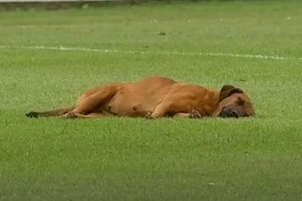 Σκύλος αποκοιμήθηκε σε γήπεδο την ώρα του αγώνα