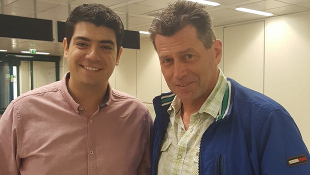 O Μίχαελ Σκίμπε με το δημοσιογράφο του Sport24.gr, Δημήτρη Σαμόλη, στη Ρώμη.