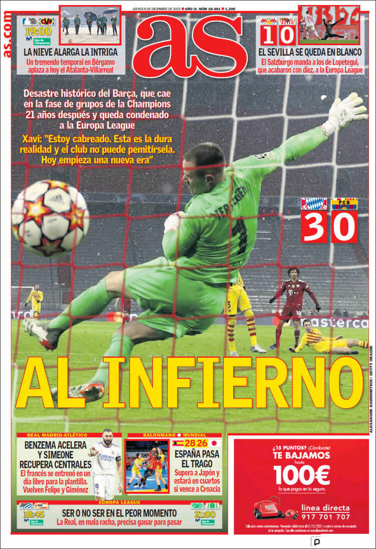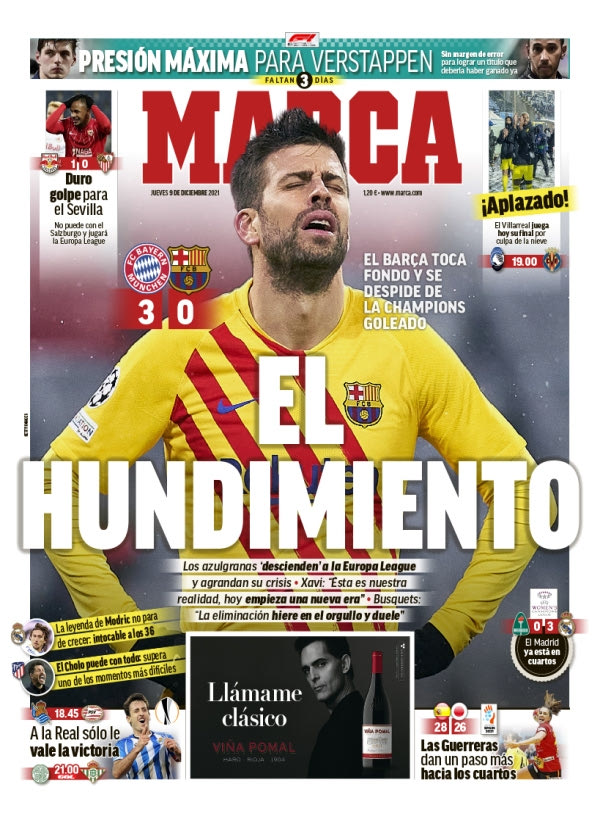 Η επόμενη ημέρα είναι δύσκολη για την Μπαρτσελόνα, με την απογοήτευση να είναι κυρίαρχη στις τάξεις των “μπλαουγκράνα”. Από τη μεριά του ο Ισπανικός Τύπος ήταν ιδιαίτερα καυστικός και σκληρός απέναντι στην ομάδα του Τσάβι, με τα πρωτοσέλιδα της Πέμπτης (9/12) να κάνουν λόγο για “κατάρρευση” και “κόλαση”.